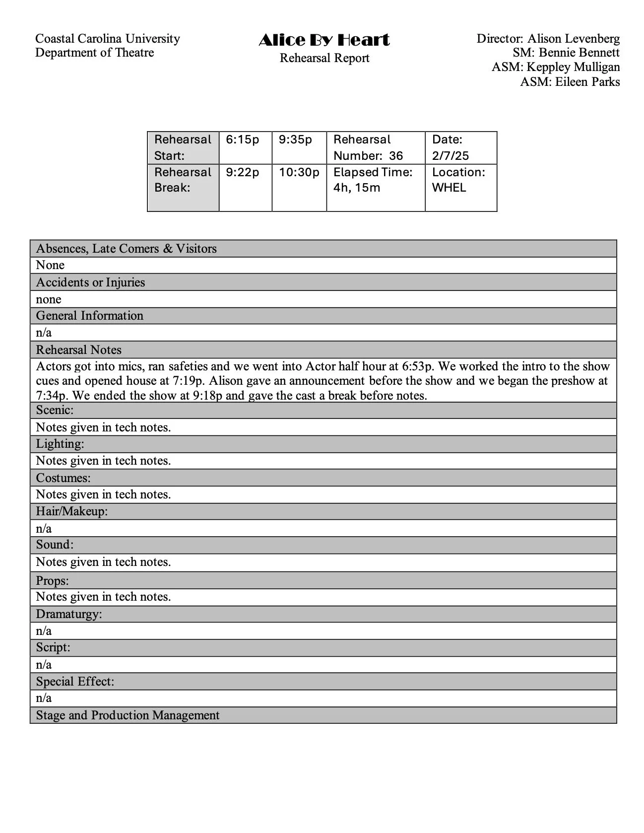 Director/Choreographer: Alison Levenberg